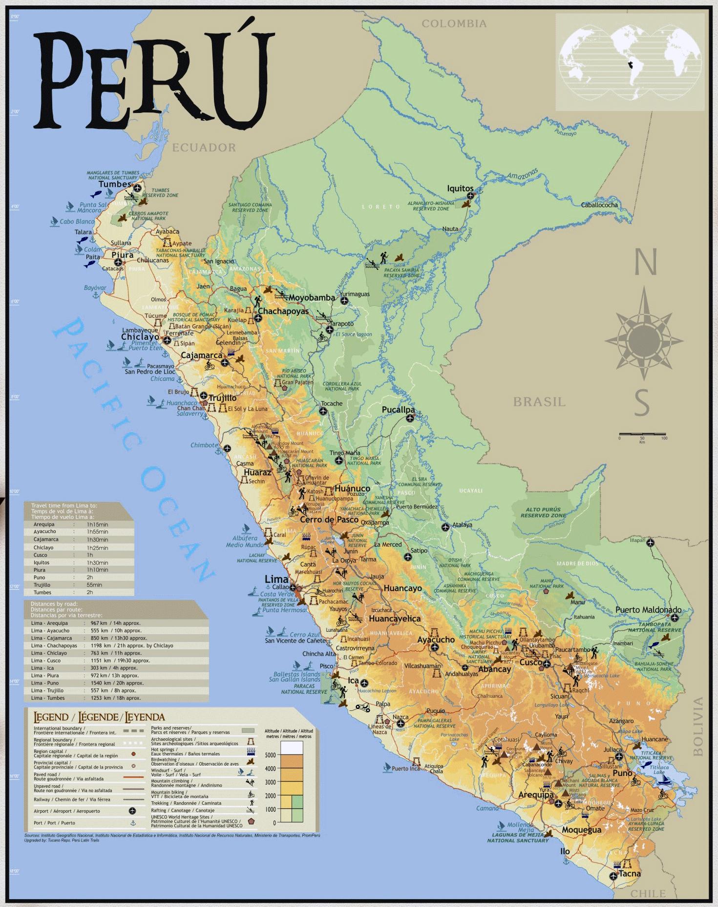 Քարտեզ Պերու ճանապարհորդության. Քարտեզ travel Պերու (Հարավային Ամերիկա - Ամերիկա) տպագրության համար. Քարտեզ travel Պերու (Հարավային Ամերիկա - Ամերիկա) բեռնել.